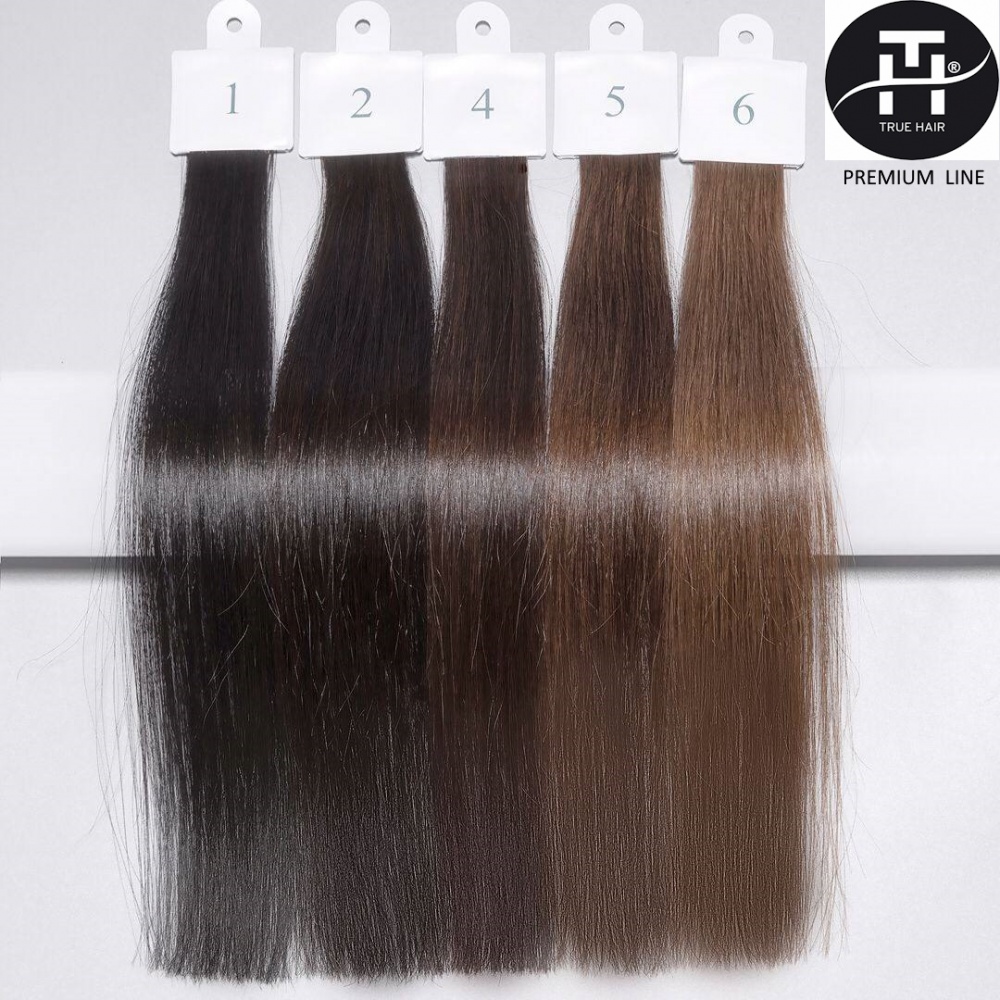 TRUE HAIR PREMIUM - 100 % natural Slavic hair. The hair cuticle is saved and their correct direction, the hair you will not cause any discomfort to the use. TANGLE FREE. The hair are soft, shiny and magnetically charming.