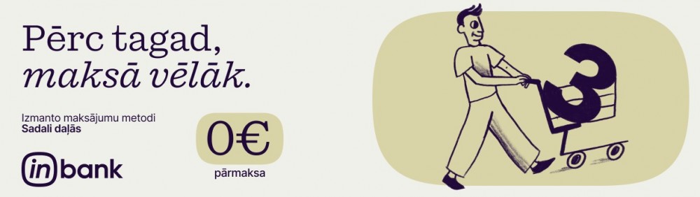 Iegādājoties pilnas cenas preci, iespējams sadalīt makājumu 3 daļās bez pārmaksas.