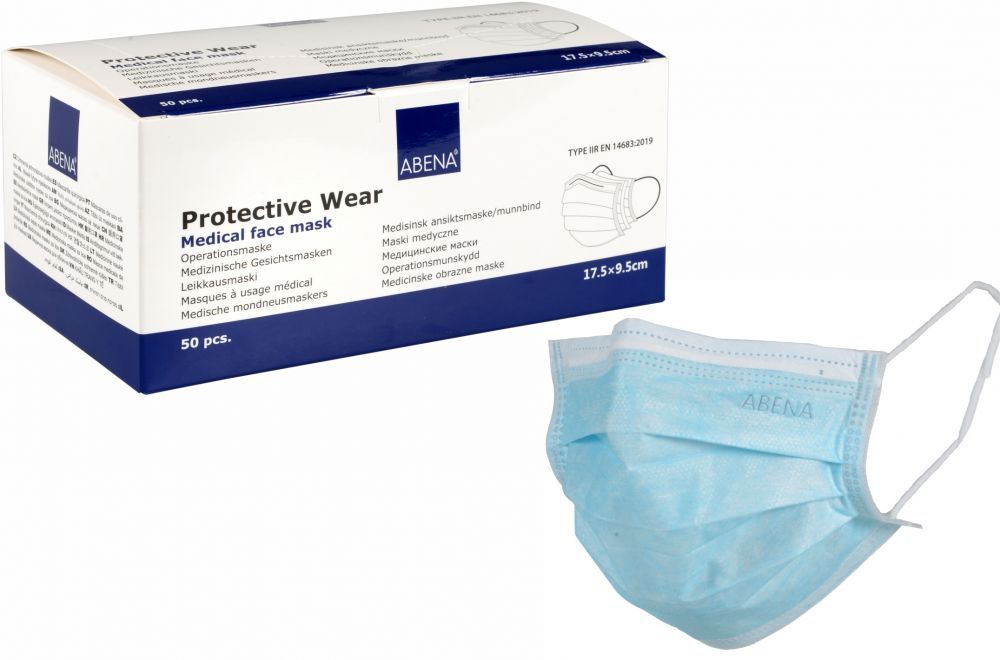 ABENA Vienreizlietojama sejas maska ar gumijām, ķirurģiskā aizsargmaska, 3-slāņu, IIR tips, vienreizēja